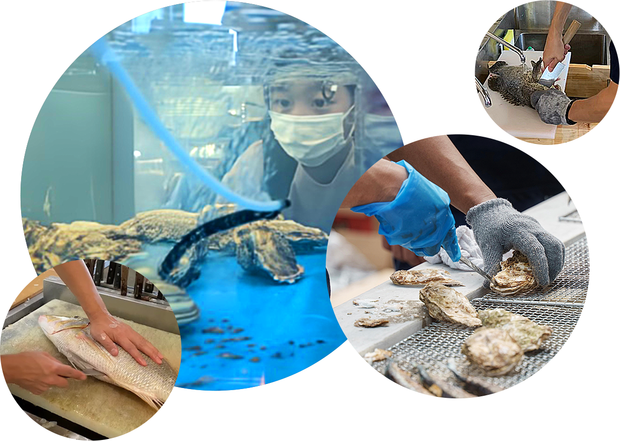 いけすの中には地元の漁港であがった新鮮なイマイユから全国から取り寄せた魚介類などBBQ職人が焼きやすく捌いてくれます!