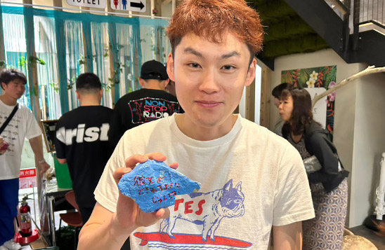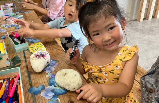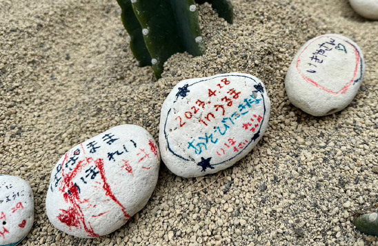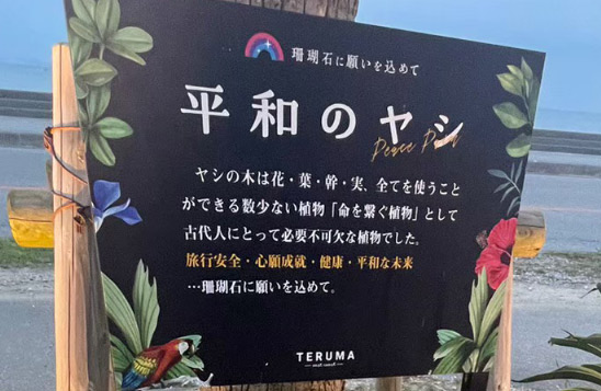 その珊瑚石に願いを込めて椰子の木や植物においてみんなで自然を大切にしたい…